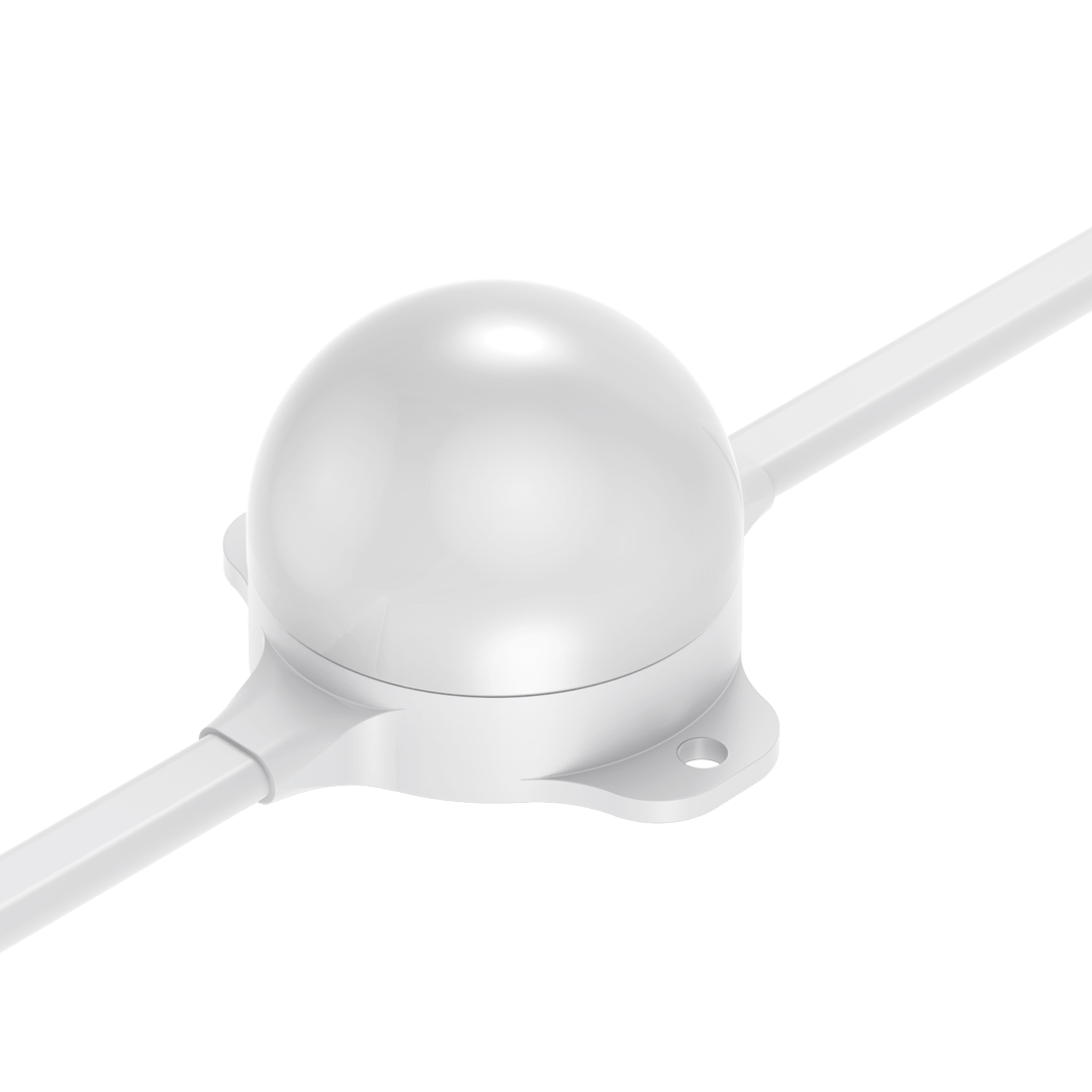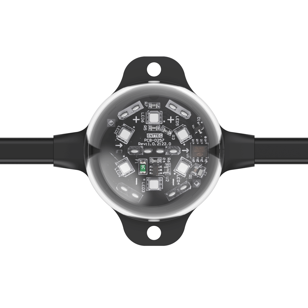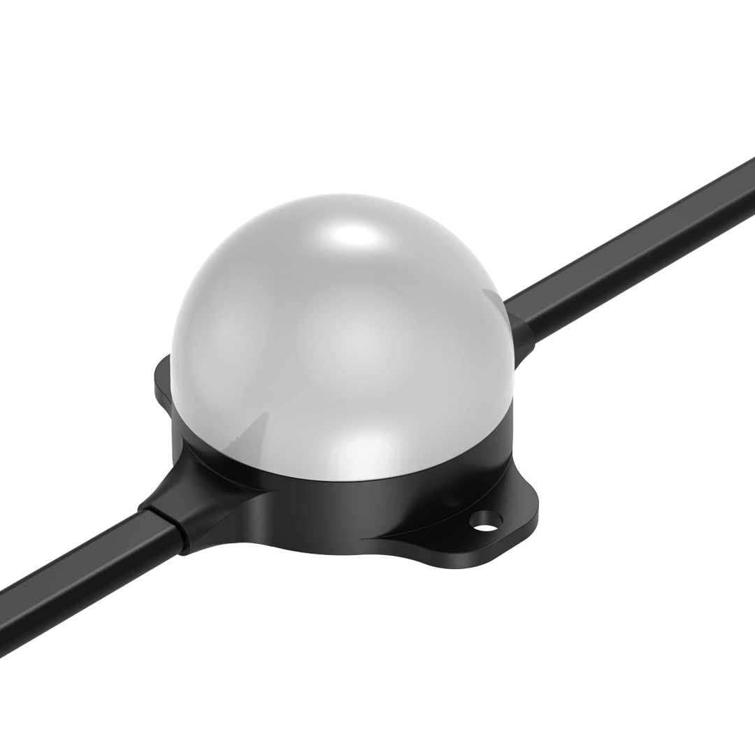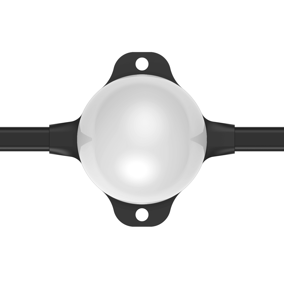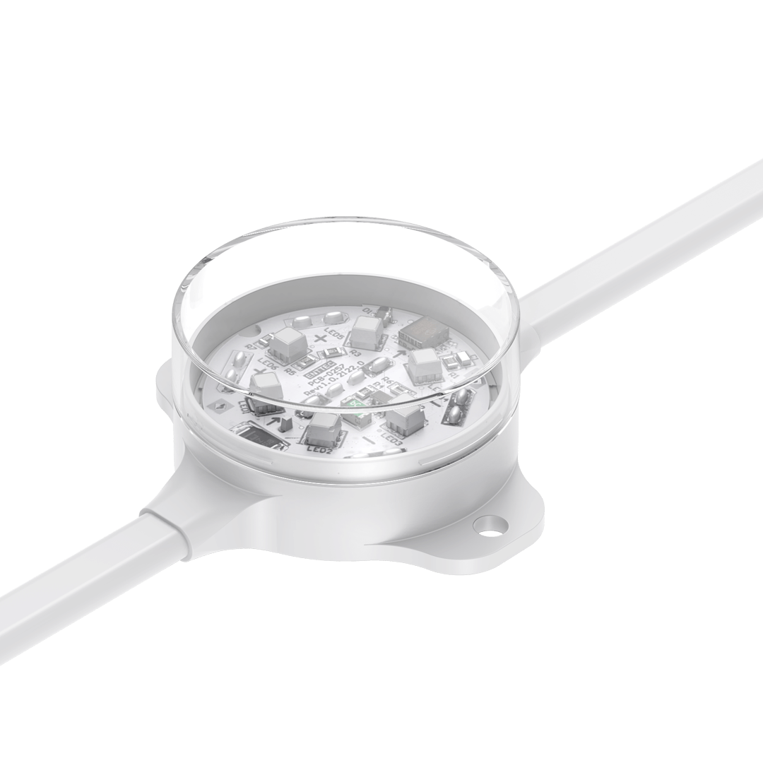 Flexible strings of ultra-bright, high-resolution 42mm RGB or RGBW LED dots — available in black or white finishes — with robust, injection-moulded cases for all-weather use.