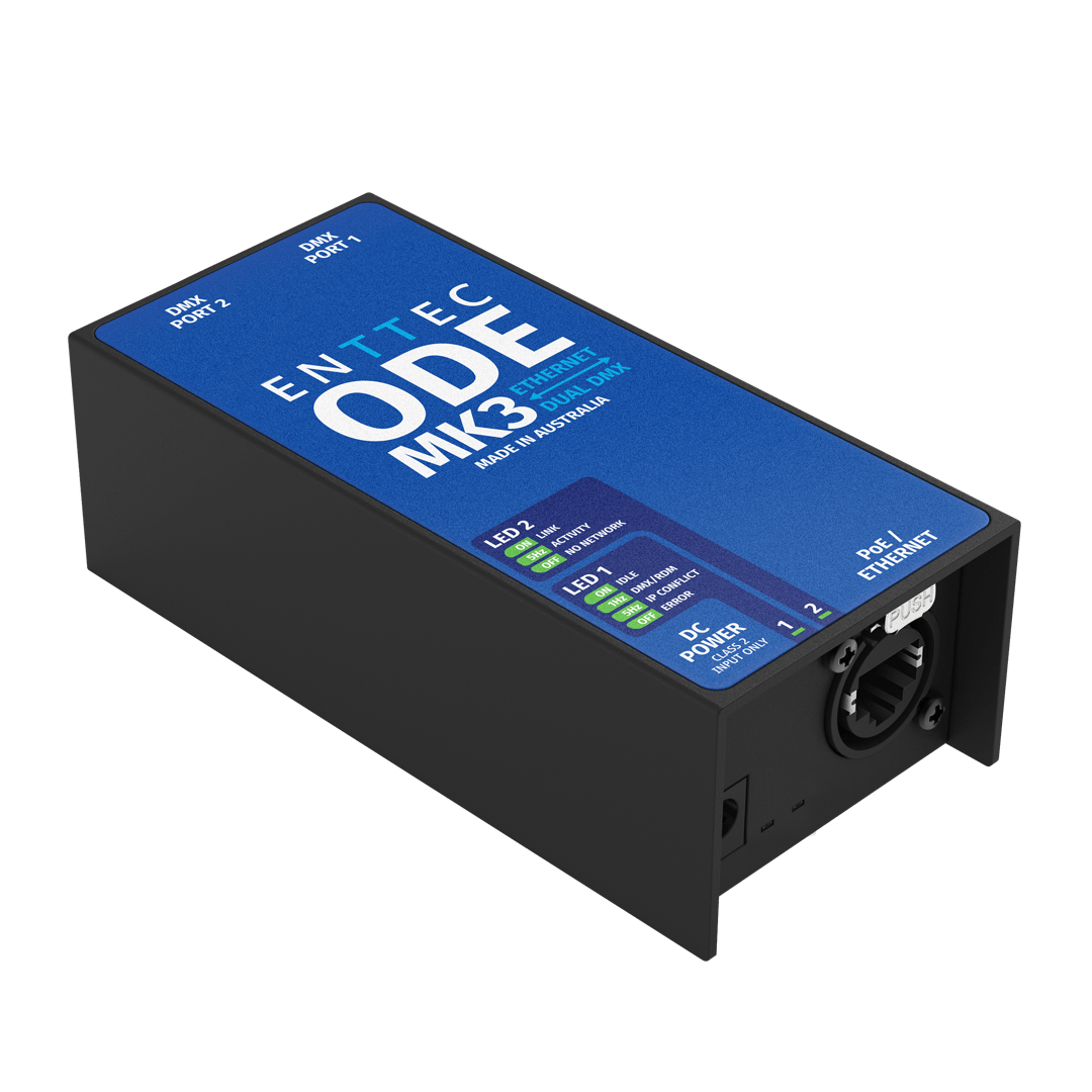 Since 1986, the DMX512 protocol (Digital Multiplex with 512 pieces of information) has been the international industry standard for lighting control. Commonly referred to as simply ‘DMX’, ENTTEC has been at the forefront of this technology, including DMX Ethernet distribution for more than two decades. As such, we’ve used our experience to innovate and refine some of the most dynamic and accurate DMX over Ethernet devices in the world.
