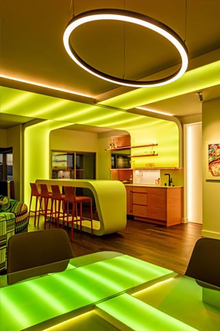 … then as the sun goes down, they begin to come alive and dance to the music. Installed in conjunction with ENTTEC’s lighting control hardware and award-winning ELM pixel-mapping software, the residents of the condo are able to define lighting schedules of their LEDs in real-time or recall pre-programmed states with ease. Talk to us here at ENTTEC about how our lighting systems can transform your own space into an enviable architectural masterpiece.