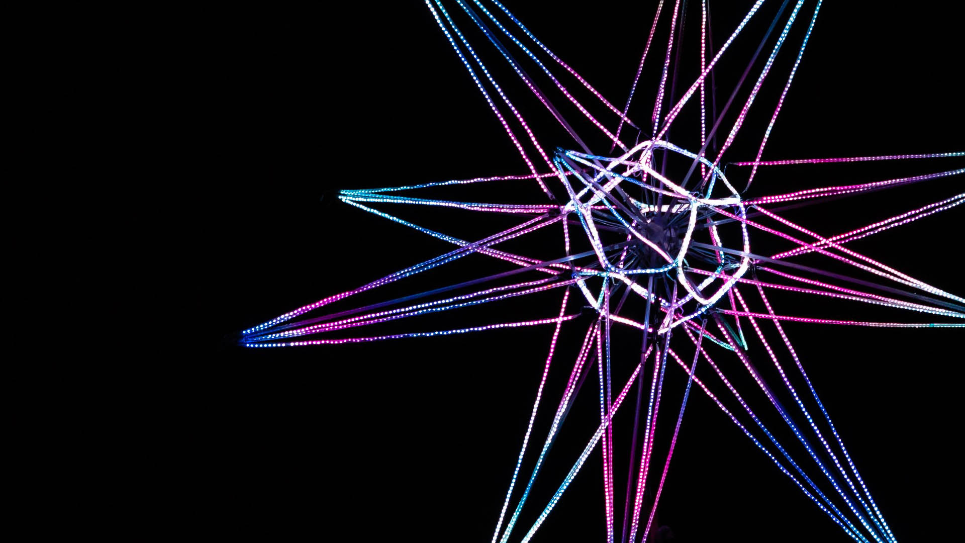 Light, Sculpture and Movement are keywords for Chaos Engine, and if an installation might be static in structure, the process is always dynamic. Playful thought experiments distilled into concrete visual outputs is descriptive of Chaos Engine. Back in 2017, Chaos Engine were commissioned to create a Christmas tree which was to stand on a silo in the Odense Harbour in Denmark. However, after giving it some thought, they realised that a star would be a much better alternative, due to the already countless amounts of Christmas trees throughout Denmark.