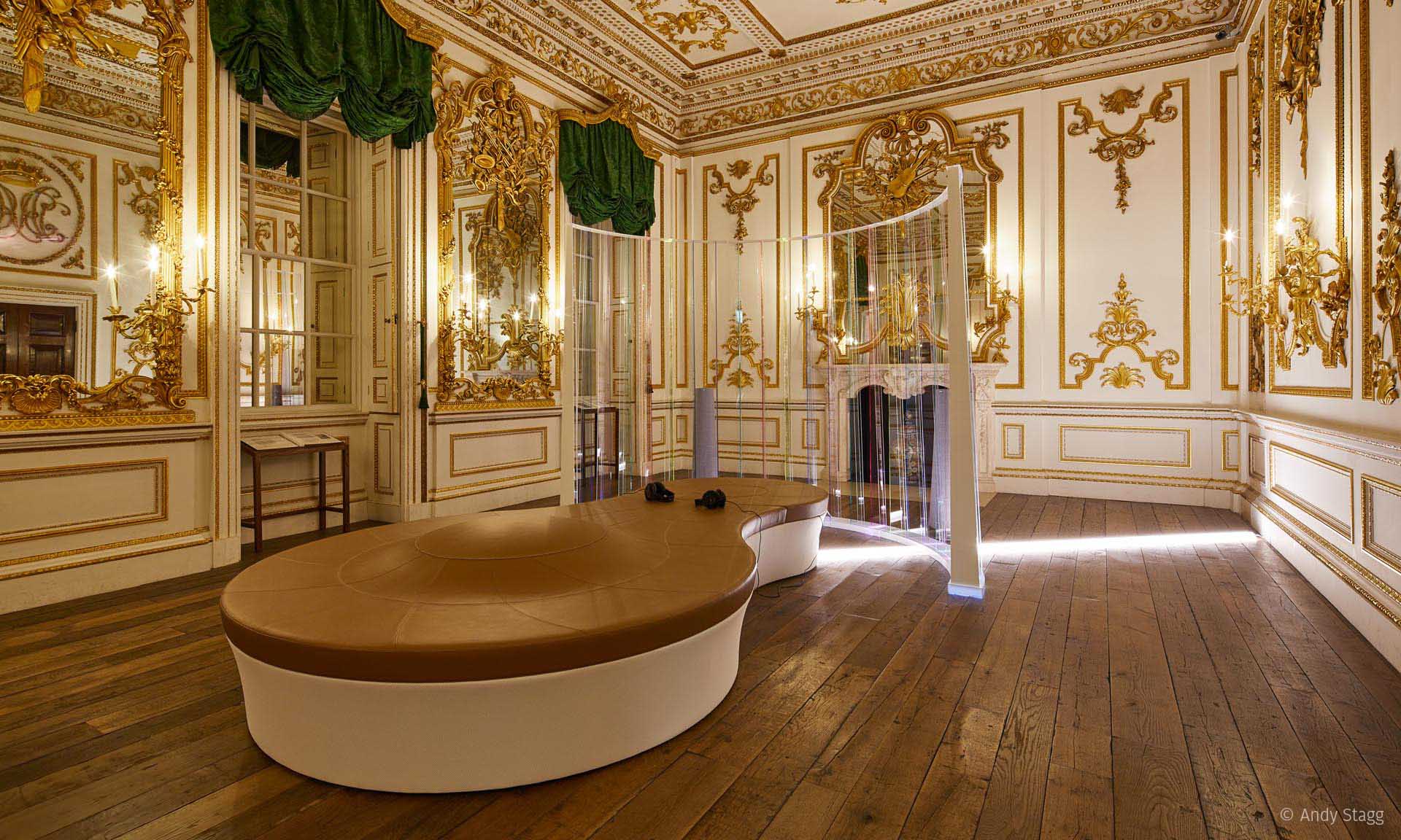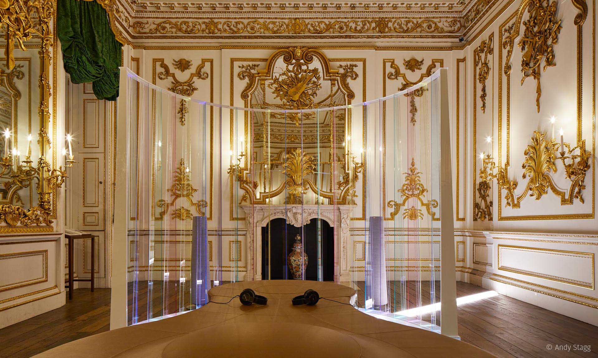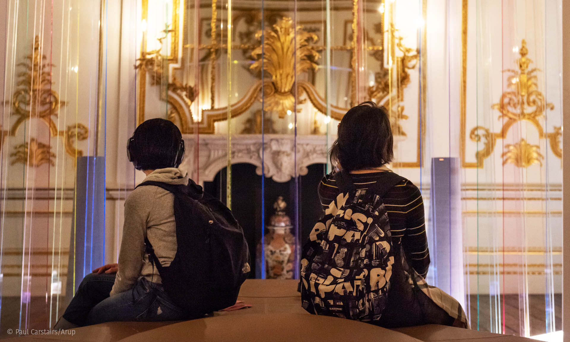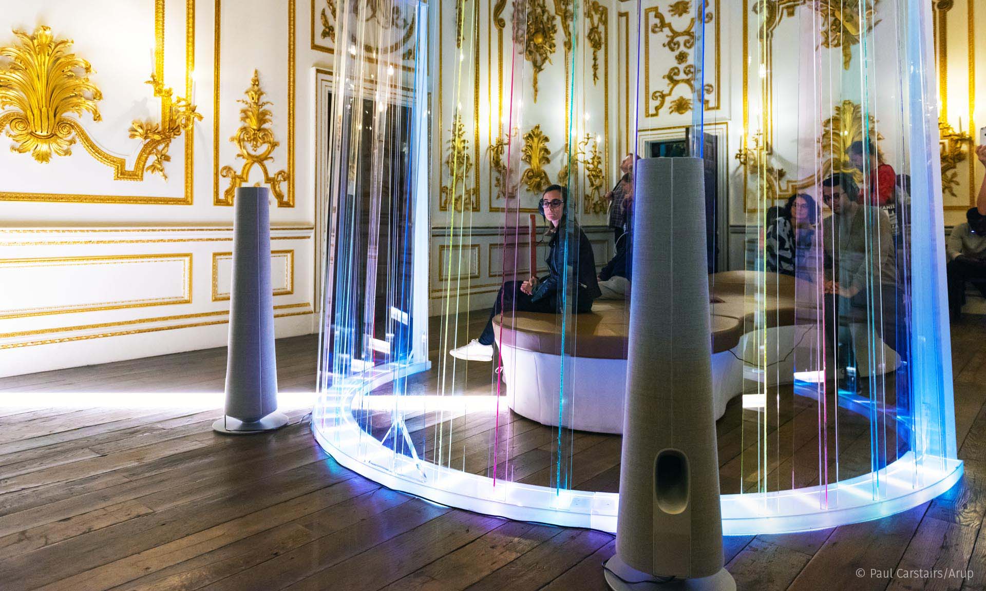The location for the project was the stunning 18th century Norfolk House Music Room in the V&A Museum, London. The project featured a viewing and listening bench, with a transparent screen curved around one end. The screen was designed to envelop the visitor in Pärt’s music and featured vertical slats of Perspex® acrylic (from the Vario collection) which were lit up by 5 colours specifically chosen by Arup to represent the full colour spectrum.