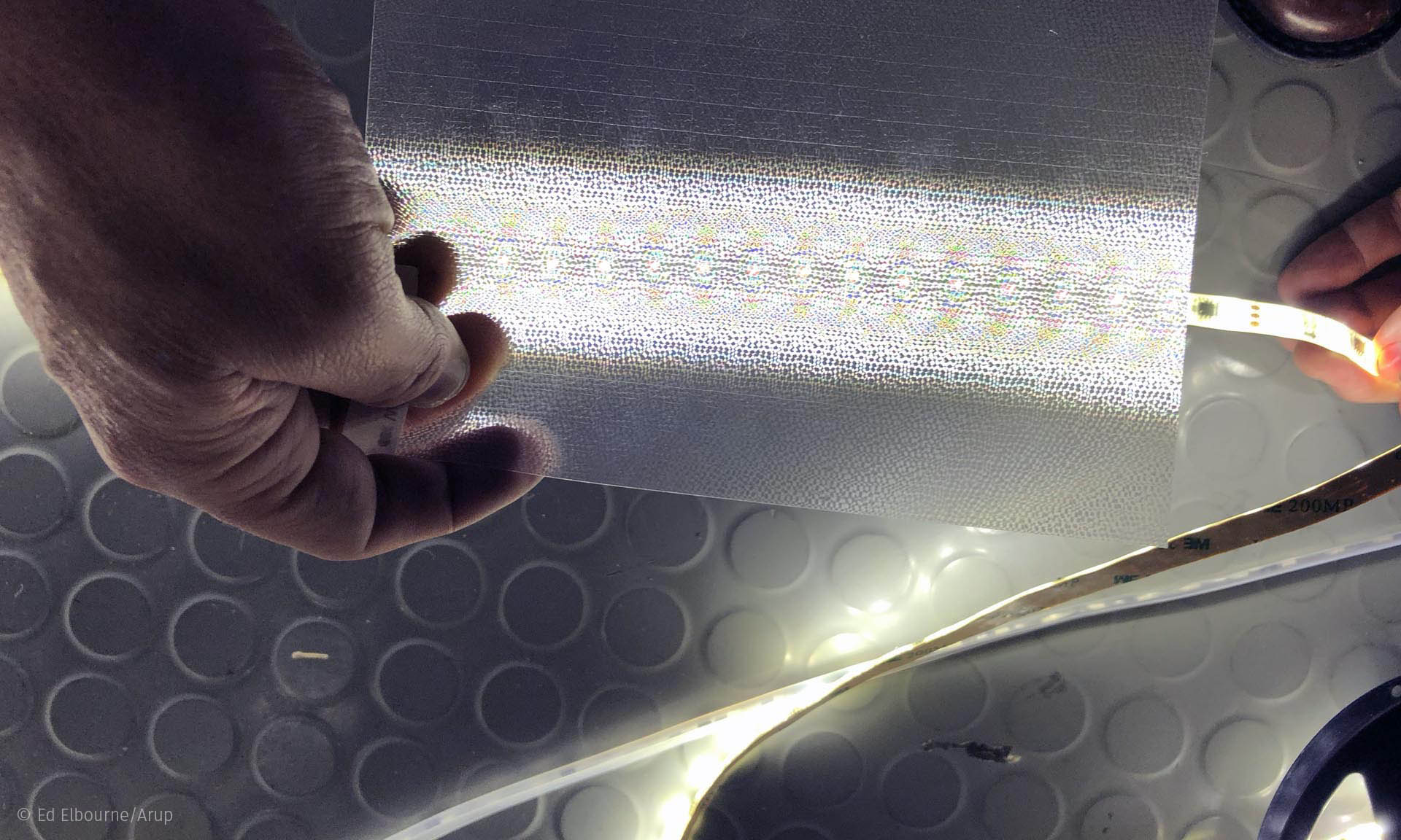 The project, inspired by composer Arvo Pärt and designed by Arup, featured a bench with a curved transparent screen illuminated by ENTTEC’s LED products, including CV and pixel tape. This setup created a serene light display that complemented Pärt’s music, representing the full color spectrum