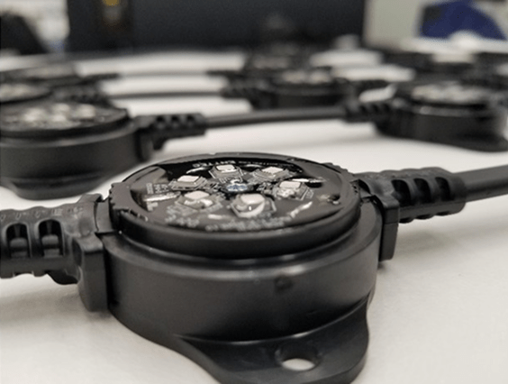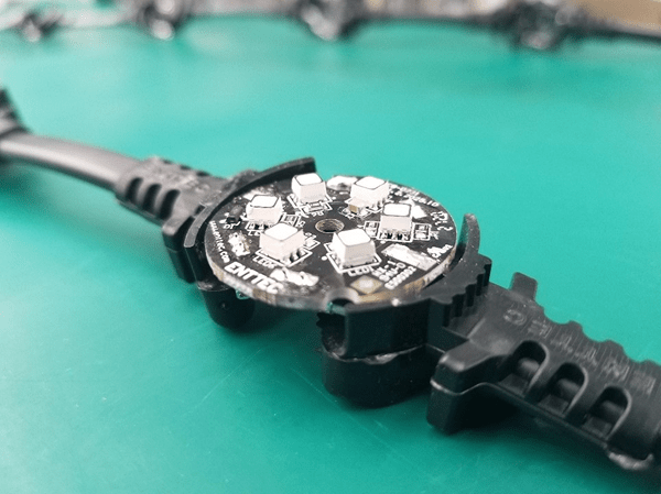 Both have the components covered with a clear epoxy or PU resin to ensure they are waterproof. At ENTTEC, we are aware that certain polymers can degrade over time. In fact, a lot of resins will yellow with UV exposure when they have the sun beating down on them. Discoloured resin will of course skew the colour of your dots’ light output. The ENTTEC dots, however, are made with a more expensive UV-resistant, optically clear polyurethane resin. This helps the product resist yellowing over time as well as keeping the resin somewhat flexible so it doesn’t go brittle and crack from repeated thermal cycling over the years.