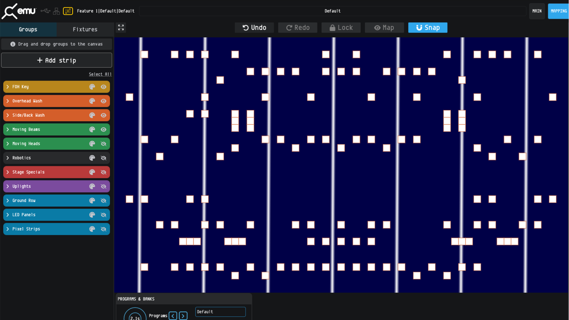 For those taking advantage of EMU’s inbuilt oscillators, use MIDI clock or use tap tempo through MIDI CC or a to set the global speed and synchronise all show file oscillators effortlessly in real time.