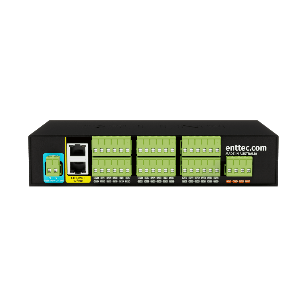 Compatible with the S-PLAY SP1 and LITE, ENTTEC’s I/O Extender enhances your system’s input/output capabilities, integrating with setups for advanced smart lighting control.