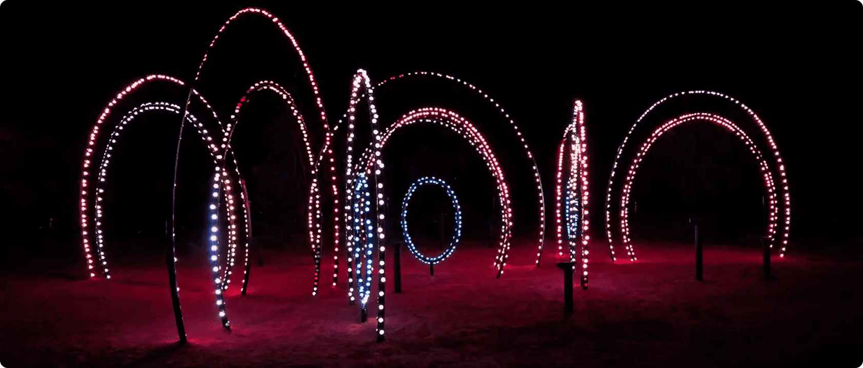 Flexible strings of ultra-bright, high-resolution 41.5mm RGB LED dots with robust, aluminum cases for all-weather use