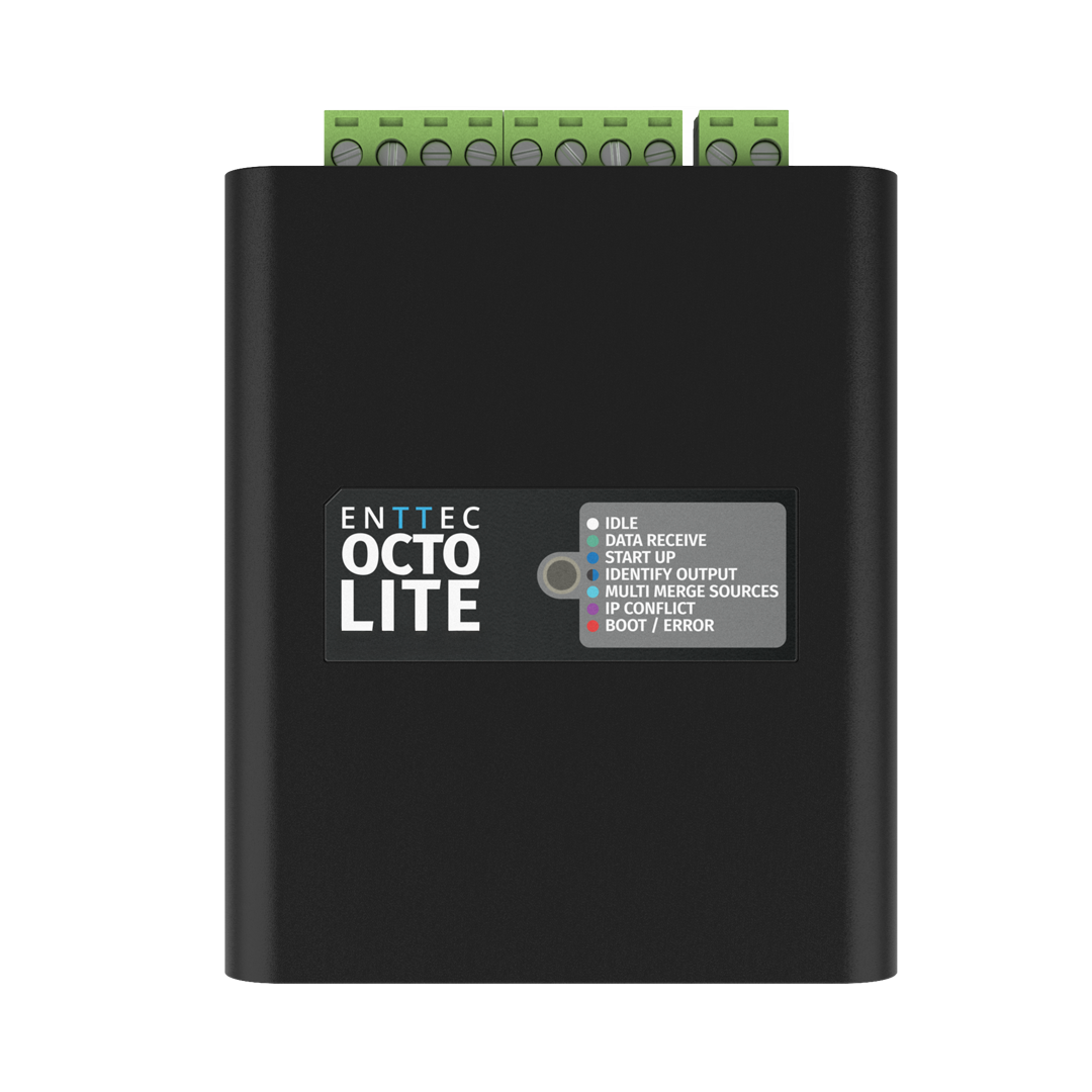 The OCTO LITE delivers 8 universes of eDMX-to-pixel conversion in a 4-module DIN-rail form factor. Supporting up to 1,360 RGB or 1,024 RGBW pixels per controller, this space-efficient unit handles Art-Net, sACN, and ESP protocols with the same proven OCTO architecture trusted in installations worldwide.