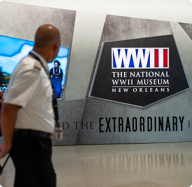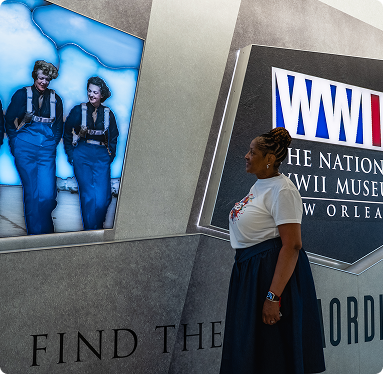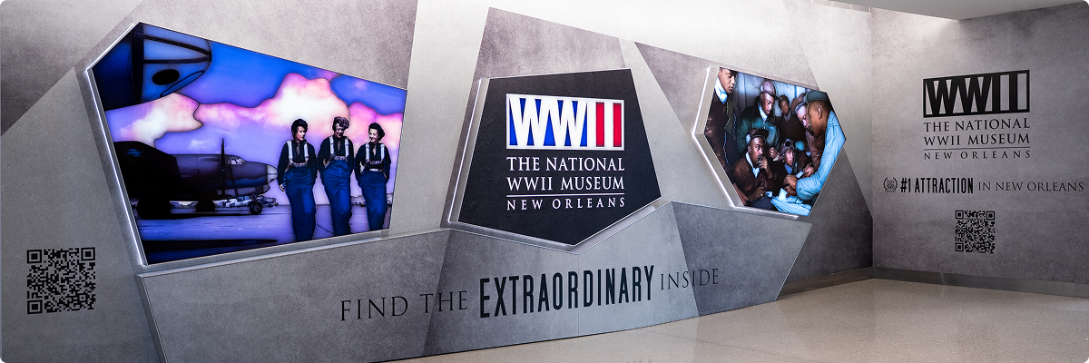 This is Watercolors, an installation created by Luminary Design and inspired by The National WWII Museum’s “Find the Extraordinary Inside” campaign. Images of WWII aviators, originally captured only in black and white, are brought into full color and motion through a display medium Luminary developed called Magic Portraits.