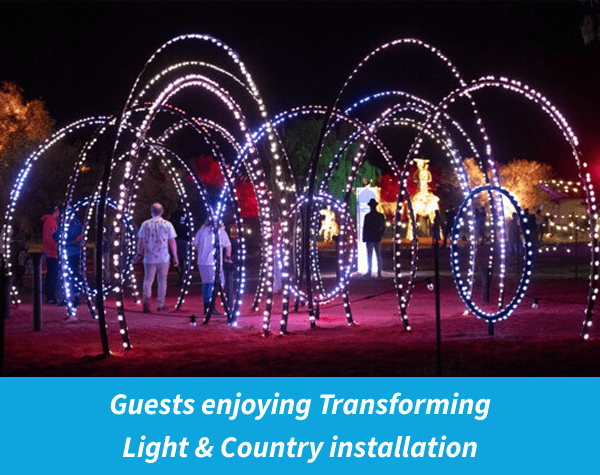 Among the standout installations was a glowing playground of oversized LED hoops, carefully crafted into interactive walk-through experiences. Children ran in and out of the loops, bathed in ever-changing colours, while adults marvelled at the technical precision and immersive storytelling. These luminous rings weren’t just eye-catching sculptures — they were portals into a Dreamtime world of movement, memory, and shared wonder.